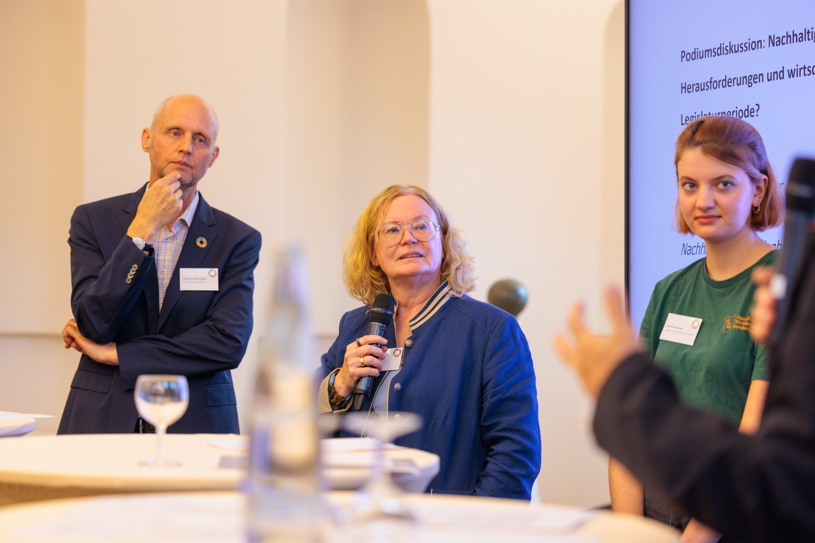 In der Diskussion tauschten sich die RednerInnen zu Nachhaltigkeit im Spannungsfeld sozio-politischer Umbrüche, ökologischer Herausforderungen und wirtschaftlicher Krisen aus. Im Fokus stand die Frage: „Wie weiter in Brandenburg in der neuen Legislaturperiode?“